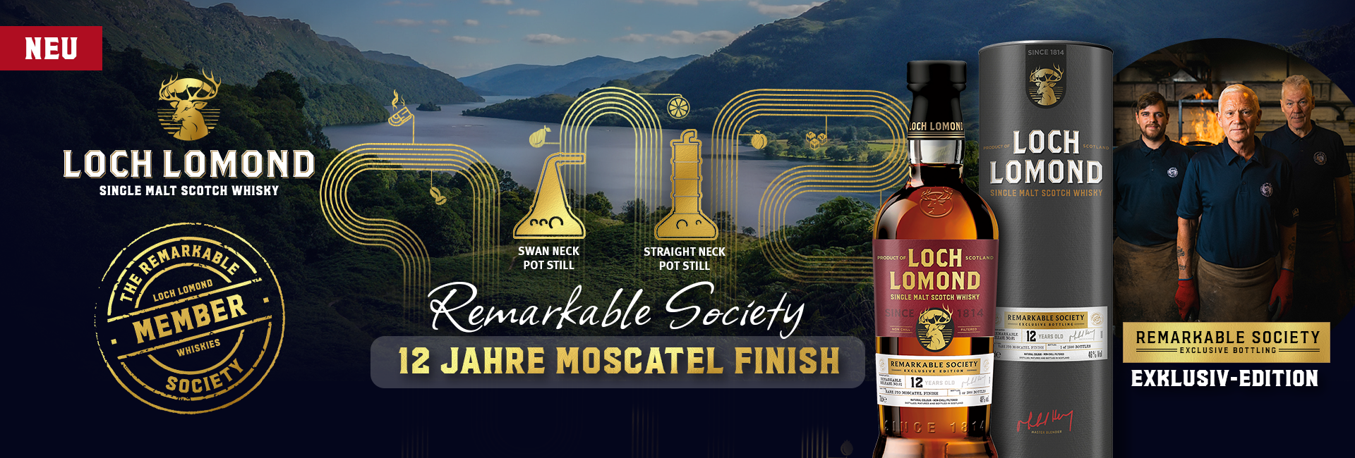 Die Highland-Destillerie Loch Lomond steht seit jeher für Innovation und Vielfalt. Als eine von nur vier Brennereien in Schottland besitzt sie eine eigene Küferei und schafft mit der Kombination aus traditionellen Swan Neck Pot Stills und den einzigartigen Straight Neck Pot Stills ausgezeichnete Single Malts. Mit verschiedenen Cut Points, unterschiedlichen Hefe-Kulturen und der Verwendung von getorfter sowie ungetorfter Gerste schafft Loch Lomonds Master Distiller Michael Henry ein unvergleichlich breites Spektrum an Geschmacksprofilen. So entsteht ein Gesamtportfolio außergewöhnlicher Single Malt Whiskies, das sich durch den unverwechselbar fruchtigen Loch Lomond Signature Style auszeichnet.